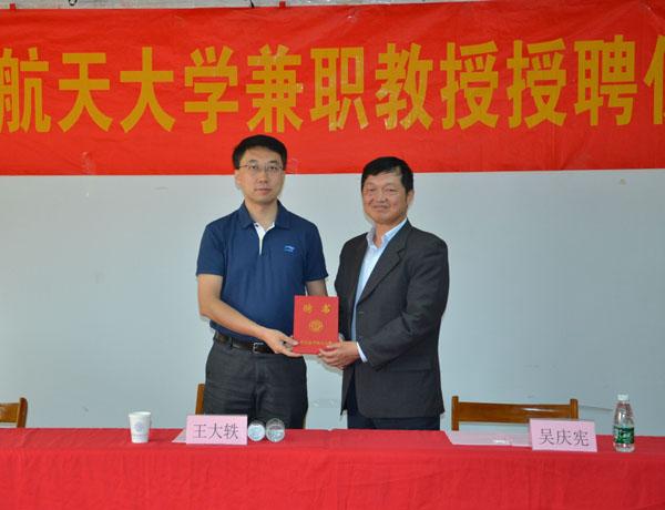 仪式上,吴庆宪副校长致欢迎辞并代表学校为王大轶研究员颁发了兼职教授证书并佩戴校徽。姜斌院长介绍了AC米兰中文官方网站的相关学科发展状况,对王大轶研究员加入南航大家庭表示衷心的欢迎和祝贺,表示AC米兰中文官方网站将以此为契机,在长久以来良好合作的基础上,与五�二所展开更加深入广泛的合作,推动相关学科建设、研究生培养和科研工作的发展。王大轶副所长对成为南航兼职教授深表荣幸和感谢。