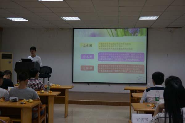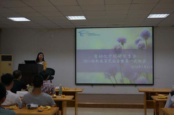21点30分,研究生会各位成员在部门负责人的引领下有序就座,迎新见面会正式开始。首先由研究生会副主席虞波同学致欢迎辞并介绍了研究生会的一些基本的规范制度;随后研究生会主席孟无忌发表讲话,他首先代表研究生会对2014级新成员的加入表示了热烈的祝贺和欢迎;接着又介绍了研究生会的基本结构和各部门职能,并结合自身经历,对2014级的新成员们提出了几点建议和要求,希望大家在研究生会能够踏踏实实、认认真真的做好每一件事,更好的为全院研究生服务;最后,研究生辅导员刘斐文发表讲话,鼓励大家好好工作努力科研,希望研究生会成为一个促进大家迅速成长、全面发展的平台。讲话结束后,会场立刻响起热烈的掌声。从这片掌声中,能听到大家对做好自身工作的坚毅决心,更能听到大家对研究生生活的美好期望。