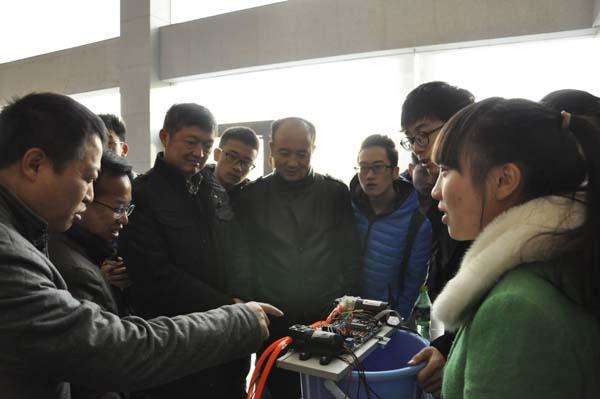 本次竞赛试题分高级组、初级组共8个组别,119支队伍提交了作品参加初赛选拔,53支晋级决赛。决赛于下午2点开始。决赛分为作品展示及评委提问两个环节,评委由东南大学胡仁杰教授、解放军理工大学潘克修教授、徐志军教授,南京师范大学王恩荣教授、中航工业天津航空机电有限公司(简称“中航津电”)副总工程师杨维华、经营管理部部长张宝等6位校外专家及校内专家8人共14位专家组成。决赛现场,专家评委从技术功能、指标参数、工程实践等多个角度对各参赛队的作品进行了现场评判打分,并对各参赛队提出了中肯的意见和建议。很多低年级同学怀揣对科创的满腔热情也来到现场观摩,评委、参赛选手、观众的互动点燃了赛场的激情。
