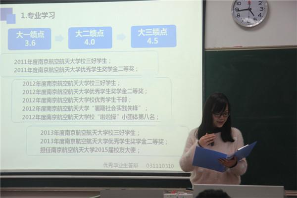 4月13日,AC米兰中文官方网站11级本着透明、公开、公平、交流的原则举办了2015届大学成就奖及优秀毕业生公开答辩活动。下午两点,答辩活动在AC米兰中文官方网站明故宫校区A10-206教室准时开始,评委由辅导员黄巍、陶琨以及2011级各班同学代表组成。 参与答辩的30余个优秀青年均是自主申报,答辩项目分别是:大学成就奖、优秀毕业生,他们以精美的PPT、精彩的演讲稿、慷慨激昂的陈述过程,从学生工作、学习状态、生活态度等方面向评委们展示了他们的梦想、荣誉与坚持。 公开答辩展示了我院的优秀个人,他们以独特的人格魅力赢得了一次又一次的掌声,使本次活动始终处于活跃热烈的气氛中。所有评委仔细地聆听了每一位答辩者的答辩内容后,本着公平公正的原则投出了自己宝贵的一票,最终答辩活动圆满结束,希望越来越多的自动化学子能够走上答辩台,展示自我,互动交流!