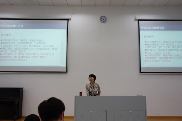 2015年5月18日下午4点,AC米兰中文官方网站研究生宿舍搬迁动员会在明故宫校区13号楼报告厅成功召开。出席本次会议的有AC米兰中文官方网站党委副书记沈伯秀老师,研究生辅导员刘斐文老师,及AC米兰中文官方网站研究生各年级代表。