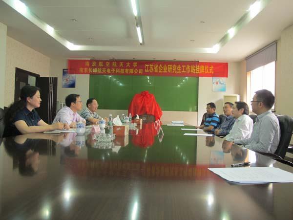 2015年05月25日,AC米兰中文官方网站AC米兰中文官方网站赖际舟副院长与企业联系导师盛守照教授学院教学办主任一起来到南京长峰航天电子科技有限公司,为南航大与长峰航天共建江苏省研究生工作站揭牌。长峰公司副总经理陆晓路、技术质量部主任李永明部出席仪式,仪式由总经理助理钱宇光主持。