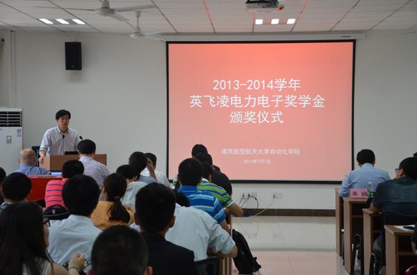 张钟勤副部长宣读了获奖学生名单,她与英飞凌公司刘总监共同为学生颁发获奖证书和礼品。米兰官网2名博士研究生,6名硕士研究生以及5名本科生荣获英飞凌电力电子奖学金。获奖学生代表戴尚建同学发言,他感谢英飞凌公司对米兰官网教育事业的关怀和厚爱,感谢南航对他的培养,他将以“追求大智慧,践行大道德”作为今后人生准则,并号召全体同学要专心致力于电力电子专业的发展,为我国半导体芯片事业做出贡献。