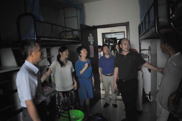 在35栋9楼的研究生新生宿舍,赖际舟院长重点关注了新生住宿条件和家具配套设施等情况,并与研究生新生深入交流。