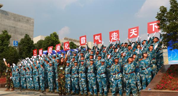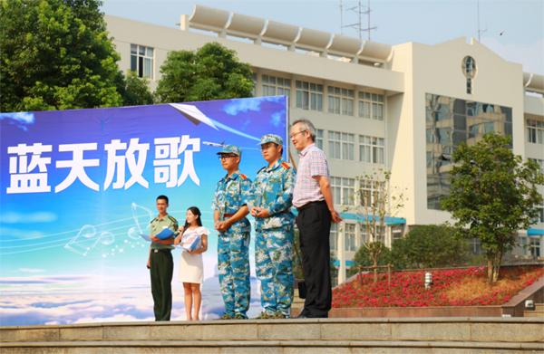 9月18日下午,将军路校区国旗广场上,AC米兰中文官方网站100名大一新生以一曲《当那一天来临》荣获“蓝天放歌”2015级新生军训赛歌会一等奖。