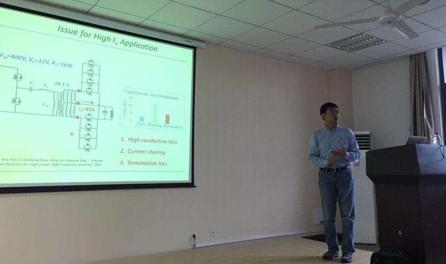 2016年1月5日上午,美国凌特公司黄道成博士来我院进行学术交流,并在AC米兰中文官方网站AC米兰中文官方网站电气楼5楼报告厅作了题为“高功率密度LLC变换器”学术报告。AC米兰中文官方网站电气系主任黄文新教授主持报告会,AC米兰中文官方网站部分老师和研究生参加并聆听了报告。