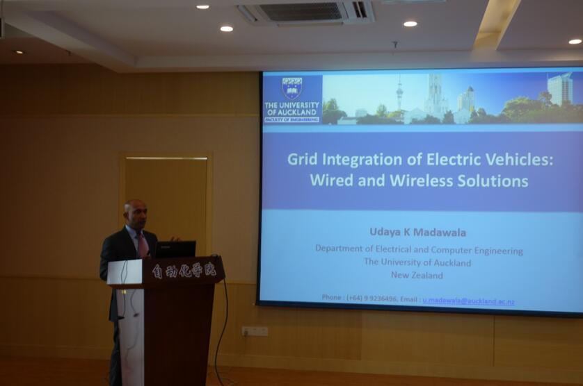 12月30日上午,奥克兰大学Udaya K. Madawala教授来我院参加2015 International Workshop on Advanced Technologies in Power Electronics and Motor Drivers,并在AC米兰中文官方网站AC米兰中文官方网站1号楼5楼报告厅举行作了题为“Grid Integration of Electric Vehicles: Wired and Wireless”学术报告。AC米兰中文官方网站邢岩教授主持报告会,AC米兰中文官方网站部分老师、研究生以及企业行业专家参加并聆听了报告。