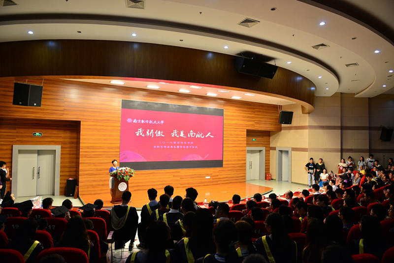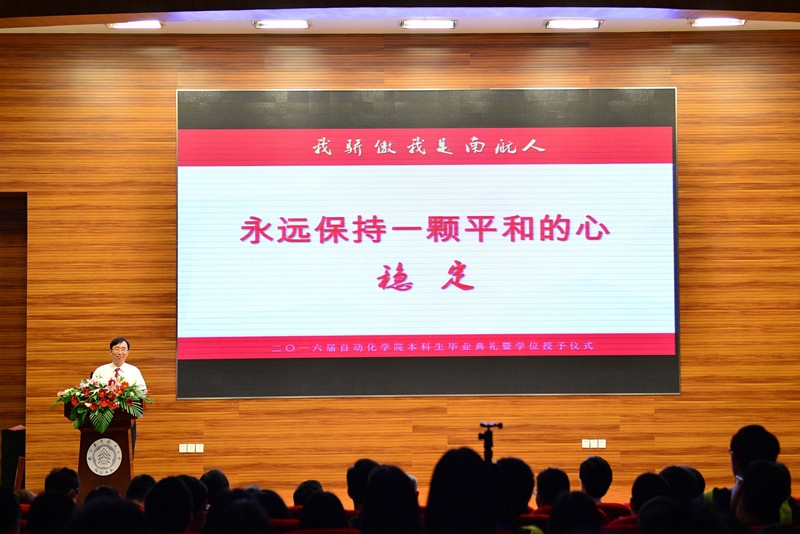 学院院长姜斌教授代表全院师生,向圆满完成学业的2016届全体毕业生们表示最热烈的祝贺和最真诚的祝福。他肯定了2016届毕业生用四年的汗水与奋斗写成的漂亮的成绩单,同时也用控制理论中“稳定”“容错”“反馈”“调参”等关键词,勉励同学们带着平和、宽容、感恩、自律的心出发,走上幸福之路。最后,他期望同学们常回AC米兰中文官方网站这个大家庭看看,全场掌声不断。