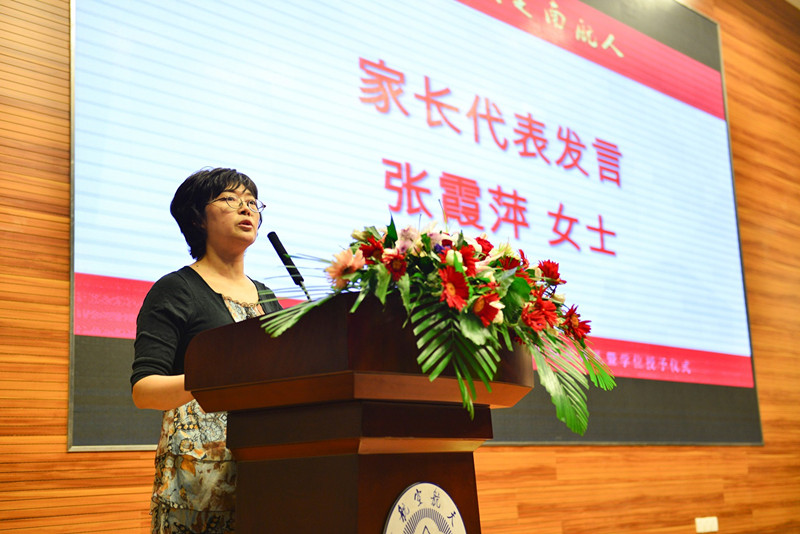 张霞萍女士代表全体毕业生家长感谢南航和AC米兰中文官方网站在过去四年里对孩子们的培养,表达了对南航和AC米兰中文官方网站未来发展的美好祝福。