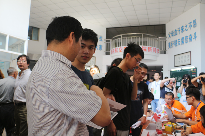 在体育中心,学院领导重点关注了研究生新生入学报到的具体情况,并与研究生新生交流,希望研究生们在南航愉快生活、耐心做科研。