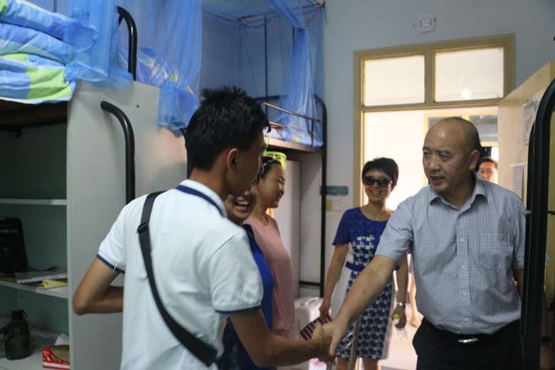 学院16级本科男生入住怡园21栋。在该楼栋迎新摊点前,学院领导向工作人员询问了迎新活动开展情况和新生报到进展,并与本科新生亲切交流、合影留念;在一楼大厅学院新生报到点恰遇校党委郑永安书记一行,院领导向郑书记汇报了学院迎新情况。随后,院领导深入宿舍与新生及家长交流,对新生提出的学习、生活上的问题进行耐心解答,让家长们安心、放心,希望同学们能在校园里快乐地成长成才。