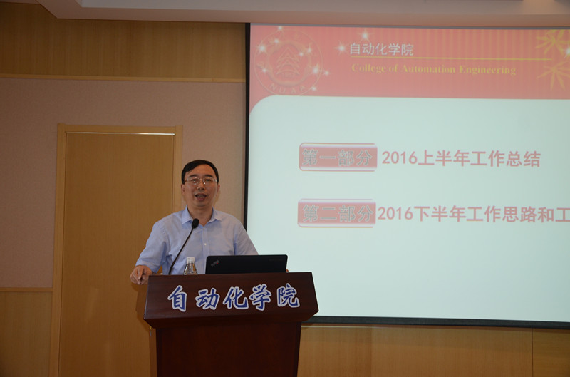 接着,院长姜斌同志代表学院做《AC米兰中文官方网站2016年上半年工作报告和2016年下半年工作部署》,报告中重点对学院的党建、教学、科研、师资、学科建设、人才培养、学生工作等方面进行全面总结和回顾。学院围绕中心工作,在学生培养、科研工作建设、学院文化建设等方面取得了新的突破和发展,特别突出的是,今年我院新增一名“万人计划”中青年科技领军人物,新增1名全国优秀科技工作者,新增2名“国家优秀青年科学基金”获得者,新增2名“江苏省杰出青年基金”获得者,获批1个工信部首批国防特色学科等。姜院长要求全体教师要以努力完成我院目标管理工作为要求,以“十三五”规划和深化校内综合改革为契机,乘势而上,坚定信心,科学发展,进一步增强我院的办学活力、干事动力和工作合力,全面推进学院各项工作再上新台阶。