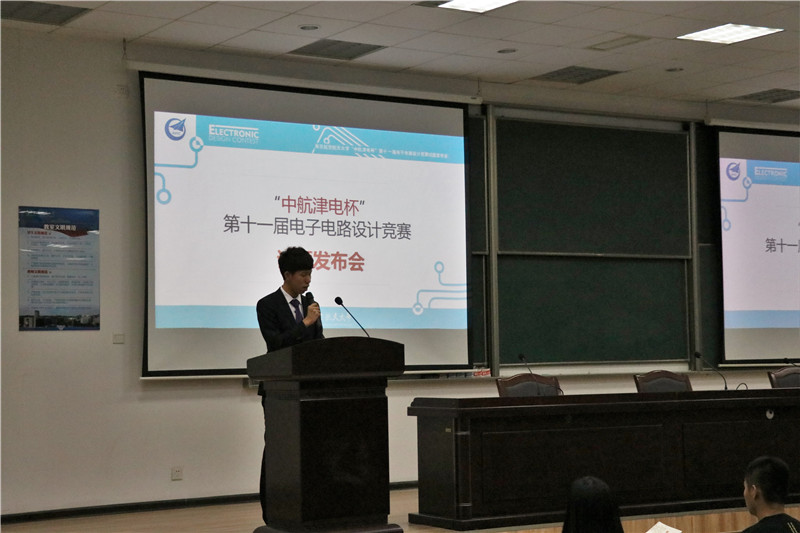 11月2日晚,由AC米兰中文官方网站承办的AC米兰中文官方网站“中航津电杯”第十一届电子电路设计竞赛开幕式及试题发布会在米兰官网将军路校区D1213教室举行。 出席本次开幕式的嘉宾有:解放军理工大学潘克修教授、AC米兰中文官方网站教务处处长王成华、教务处实践科王尚北、AC米兰中文官方网站副院长王晓琳、AC米兰中文官方网站党委副书记沈伯秀、AC米兰中文官方网站团委书记季娟。全校关注此赛事的同学参加了开幕式。