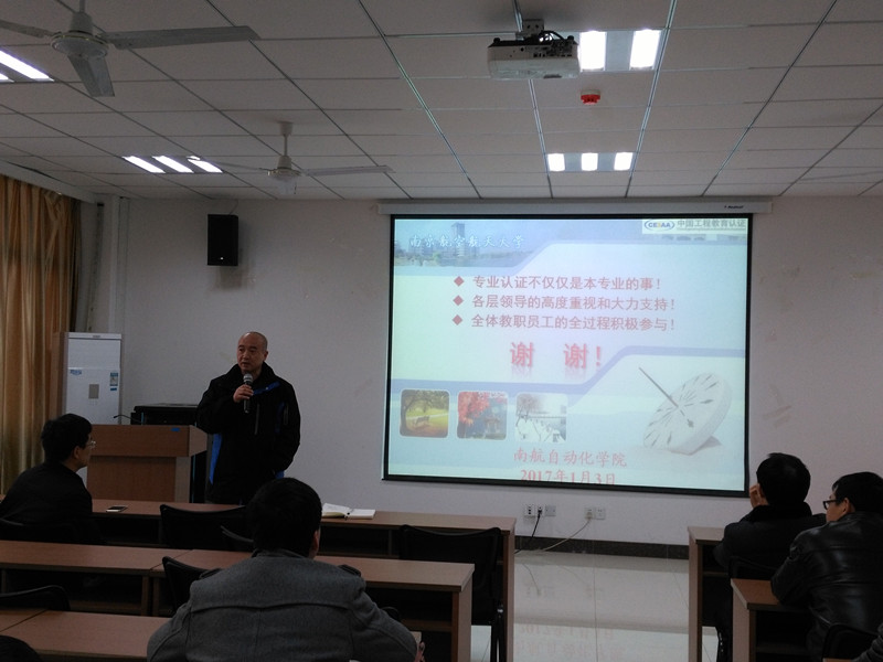 首先由王晓琳给与会老师们介绍了认证形势和自控、电气专业进行认证时的情况,从专家的角度强调了专业认证的关键要素,给出了工作安排的建议。随后,姜斌分别从认证必要性、认证与专业发展的关系两方面进行了动员,明确了工作纪律,展望了美好前景;刘建成从当前高考的大专业类招生趋势,明确了测控专业认证工作的积极意义,对寒假的工作进行了鼓励。