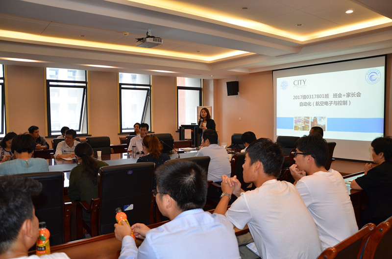 9月29日下午,2017级0317801班班会与家长会在AC米兰中文官方网站1号楼403会议室顺利召开。自动化(航空电子与控制)专业是AC米兰中文官方网站为了培养具有国际化视野并掌握航空电子与控制技术的高素质人才,与英国伦敦城市大学合作引进的联合办学项目。学生在AC米兰中文官方网站自动化(航空电子与控制)专业学习两年后在第三、四年赴伦敦城市大学学习,完成所要求的全部课程后将获得中英双学士学位。为了让学生和家长了解项目详细情况,知晓具体政策,学院特意组织学生和家长共同参加会议,教务处副处长王敬东、AC米兰中文官方网站副院长王晓琳、学院党委副书记张跃,自动控制系副主任张绍杰、教师代表刘海春老师、国教院辅导员张静、学院教务员郑成、学院辅导员汤呈懿等人出席了本次会议,本次班会与家长会由班主任齐瑞云教授主持。