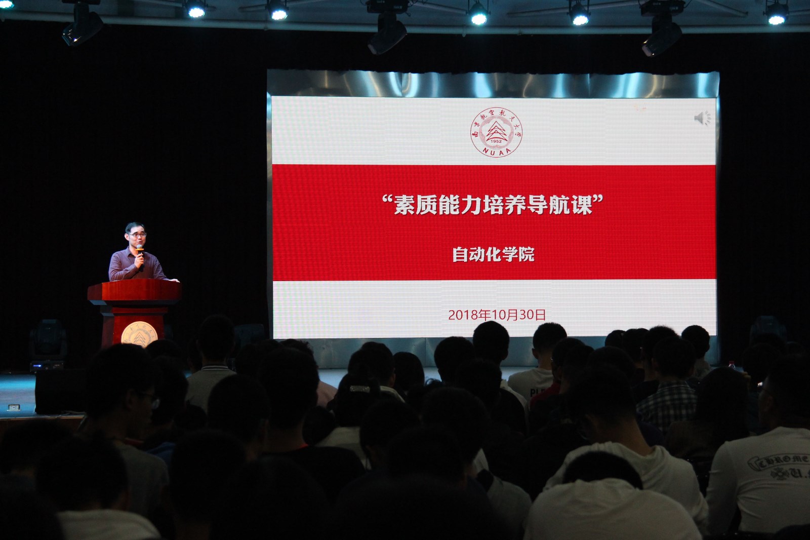 10月30日晚,2018级AC米兰中文官方网站新生素质能力导航课在南航将军路校区大学生活动中心举行。AC米兰中文官方网站党委副书记张跃老师,2018级本科生辅导员杨兴旺老师、汪明锐老师、赖少将老师,优秀学生代表2015级龙腾跃、程真,2018届毕业生江柳慧,2016届毕业生孙林楠以及全体2018级AC米兰中文官方网站本科新生参加了此次活动。