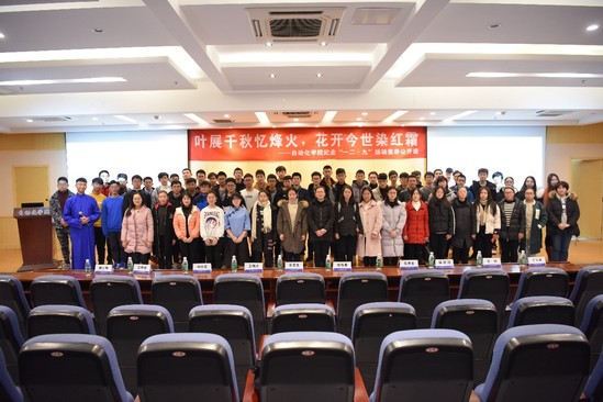 团委书记刘斐文老师说:历史不会忘记,我们也不会忘记,“一二·九”运动中这些可敬的爱国青年。在国难当头的时刻,振臂高呼,视死如归,把国家的利益看得高于一切,在民族生死存亡的毫发间,热血横撒,促使了民族的团结。