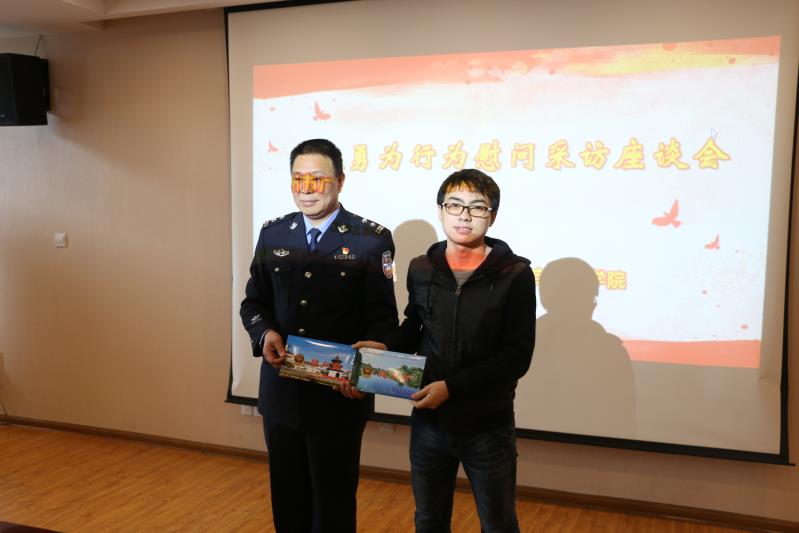邬益军部长首先介绍了事件的基本情况,在座的老师和同学都不禁为高宇的英勇行为鼓掌。广陵区头桥镇党委副书记童兵和广陵区见义勇为基金会单荣海主任分别向南航AC米兰中文官方网站递送表扬信,并向高宇同学赠送鲜花和慰问金。高宇同学随后表示,自己只是一个普通人,做了一件普通事,任何一个人遇到这样的情况都会挺身而出提供帮助。他觉得获得这个奖是对他的肯定也是对他的一种鞭策和激励,之后他会更加努力的完善自己,帮助他人。