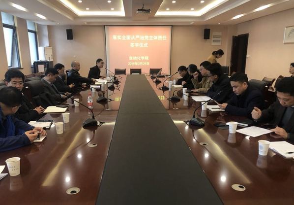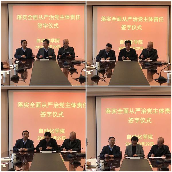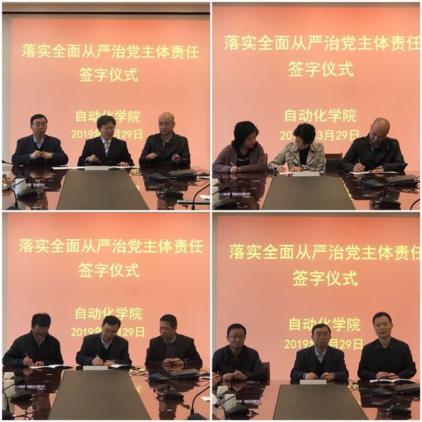 为进一步强化领导干部落实全面从严治党主体责任意识,充分发挥“头雁效应”,按照学校党委要求,扎实推进学院全面从严治党、党风廉政建设和反腐败斗争向纵深发展,AC米兰中文官方网站于2019年3月29日,在学院会议室召开落实全面从严治党主体责任的责任书签订仪式。学校副校长兼学院院长姜斌、学院全体党政领导、院长助理及各基层单位系主任、党支部书记参加了会议。会议由学院党委书记刘建成主持。