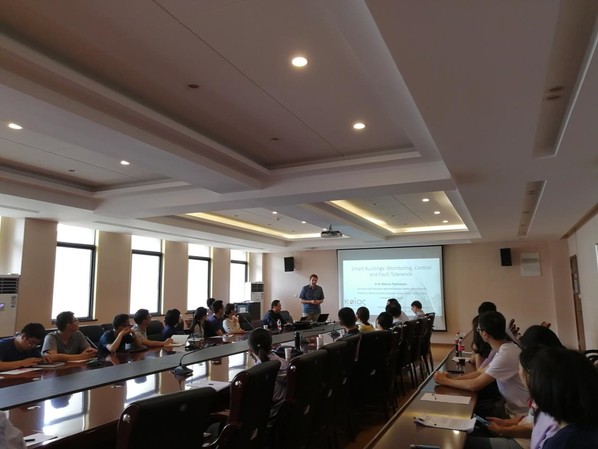 Polycarpou教授此次报告的主要内容包括:智能建筑的主要构架和发展现状,智能建筑的供暖、通风和空调系统的监测、控制和容错,以及几种估计、学习和反馈算法的介绍。