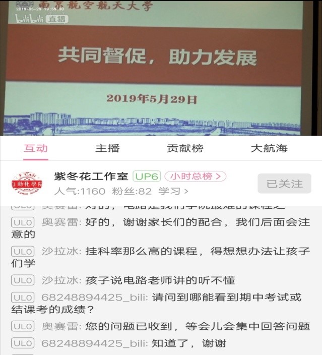 为了进一步促进家校沟通,形成教育合力,促进学生学业水平和综合素质的提高,2019年5月29日18:30AC米兰中文官方网站2018级以视频直播的形式召开了线上家长会。结合大一下学期的特点、学生前半学期的学习情况等,辅导员杨兴旺、汪明锐为家长做了详细的介绍,并分层分类地提出相应建议。此次会议在线观看人次达到1169。
