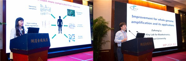 中国科学院遗传与发育研究所王秀杰研究员(左)和东南大学陆祖宏教授(右)作大会主题报告