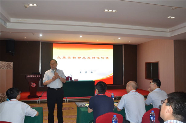 随后,王希安教授《红旗渠精神及其时代价值》的报告为我们详细介绍了红旗渠的前世今生,以及红旗渠精神宝贵的时代价值。红旗渠是20世纪60年代,国家经济困难时期,林县人民以“重新安排林县河山”的豪迈气概,在党的领导下经过十年艰苦奋斗,战胜种种困难建成的大型水利工程,是一部与大自然搏斗的壮丽史诗。红旗渠总长1525.6公里,林县人民一锤一钎削平了1250个山头,架设了152座渡槽,凿通211个隧洞,共动用土石方2229万立方米。红旗渠建成后,形成了以红旗渠为主体,南谷洞、引上水库及其他引、蓄水工程作补充调节,能引、能灌、能排、综合利用的水利灌溉网,使全县有效灌溉面积达到万亩,结束了林县世代十年九旱、水贵如油的历史。红旗渠被世人称为“人工天河”,不仅是现代工程史上的奇迹,更是当代红旗渠精神的摇篮。