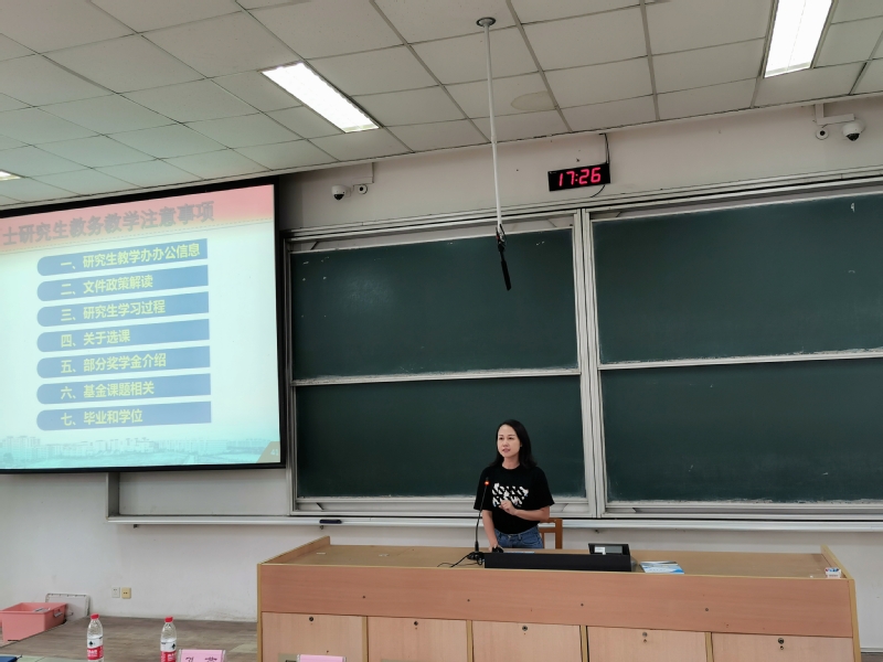 孔燕老师对研究生的教务教学事项做了详细介绍,叮嘱同学们牢记研究生生涯里需要完成的课程任务及学分要求,了解《研究生手册》对研究生的具体要求。