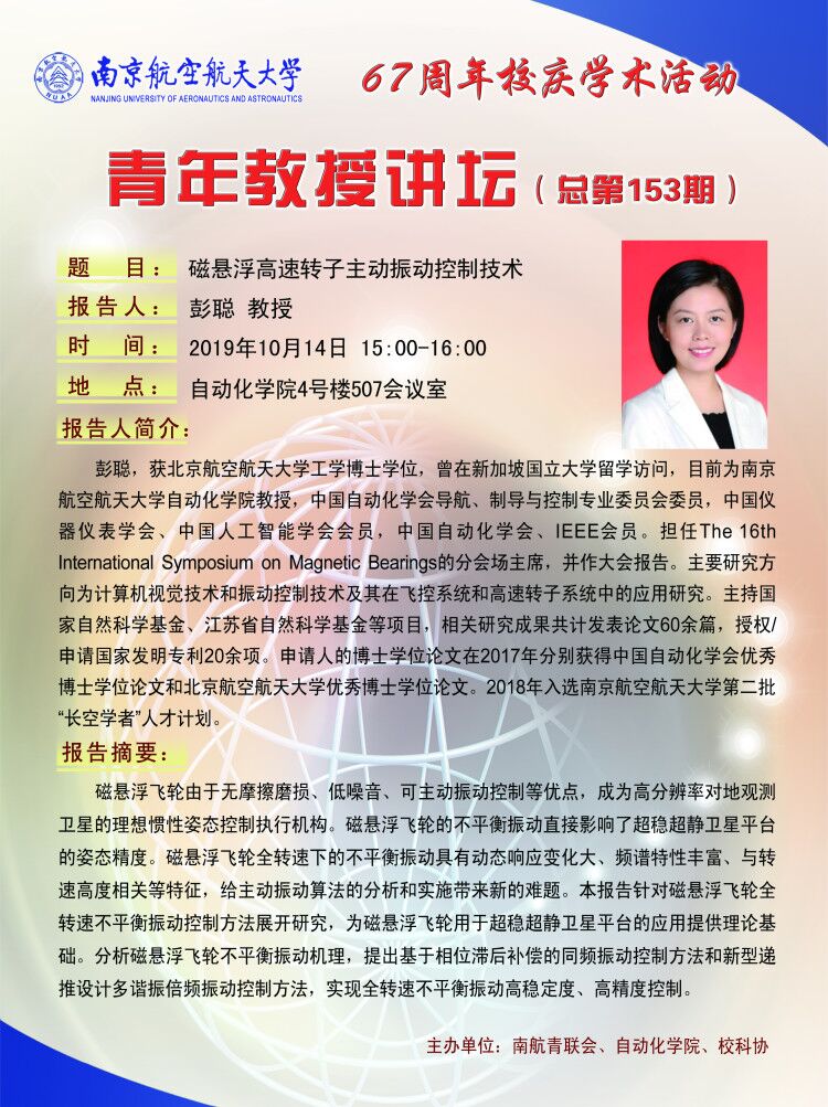 学术报告:磁悬浮高速转子主动振动控制技术