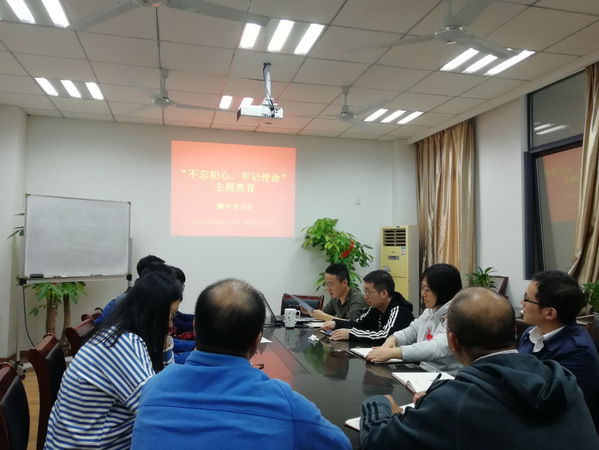 贾银亮同志首先传达了校党委书记郑永安同志在学校“不忘初心、牢记使命”主题教育动员大会上的讲话精神,汇报学校主题教育实施方案。动员支部成员通过积极学习研读《习近平关于“不忘初心,牢记使命”论述摘编》、阅读观看“学习强国App”中的相关教育资源等形式来参与“不忘初心,牢记使命”主题教育。