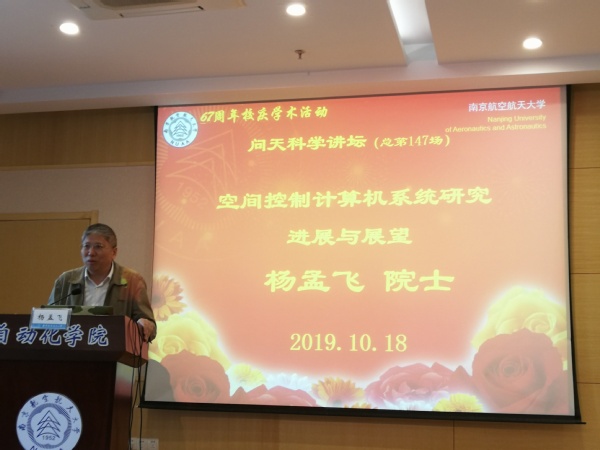 10月18日,中国科学院、国际宇航科学院的杨孟飞院士,应邀访问AC米兰中文官方网站,在AC米兰中文官方网站做了“问天”科学讲坛第147场学术报告——“空间控制计算机系统研究进展与展望”。本次报告会由AC米兰中文官方网站副校长姜斌教授主持,AC米兰中文官方网站院长江驹教授、副院长陈谋教授,航天学院常务副院长陈金宝教授,南航科学秘书长刘双丽女士等百余名师生聆听了报告会。