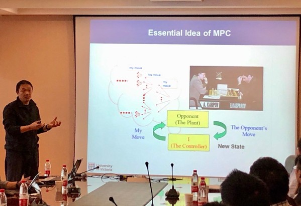 Shi教授首先对网络化控制系统的当前研究方向做了简要介绍,重点指出了网络化控制系统的研究难点。接着,Shi教授引入了模型预测控制的基本思想,并通过对系统性能与期望参数之间关系的分析,来描述了将模型预测控制的思想运用至网络化控制系统的方法。然后,Shi教授介绍了基于事件触发的模型预测控制,提出了他在该研究方向的一些思路和方法,他以水下无人机编队协同为例,展示了他们团队在分布式模型预测控制方面的最新研究成果。最后,Shi教授对模型预测控制在分布式算法上的优化等研究方向提出了展望。