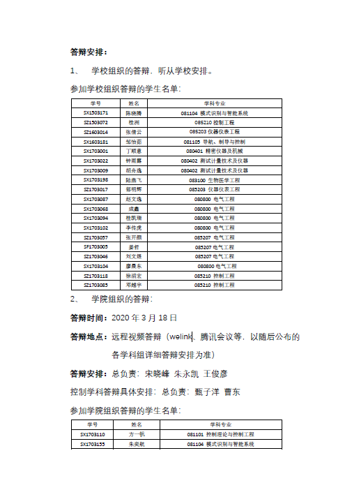 【研究生学位】AC米兰中文官方网站关于2020届硕士研究生答辩工作安排及公布参加学校、学院组织答辩学生名单的通知