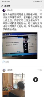 网络教学开展以来,师生最关心的事情莫过于授课质量和学习效果了。班会上学生们对于网络授课讨论热烈,大家从开始的不适应到后来充分利用网络学习资源,很多学生介绍了自己的线上学习经验,提出了很多网络教学建议。