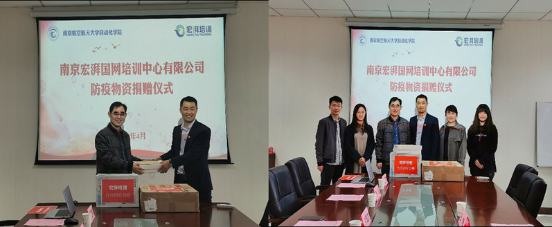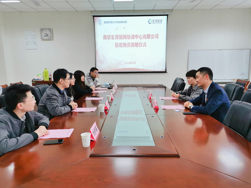 4月16日下午,南京宏湃国网培训中心有限公司防疫物资捐赠仪式在AC米兰中文官方网站1号楼405会议室举行。企业代表何广会、王略,以及我院党委副书记张跃、团委书记刘斐文和各年级辅导员出席此次仪式。