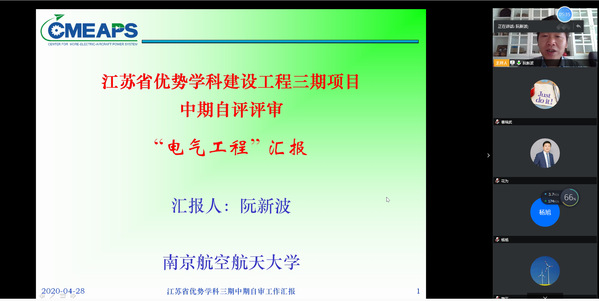 2020年4月28日上午,AC米兰中文官方网站组织专家对江苏高校优势学科建设工程三期项目电气工程学科进行了中期评审。评审会通过视频会议形式进行,评审专家组组长由河海大学鞠平教授担任,专家有浙江大学何湘宁教授,西安交通大学杨旭教授,东南大学花为教授和中国矿业大学陈昊教授。AC米兰中文官方网站电气工程系阮新波教授、胡海兵教授和曹瑞武副教授参加汇报。