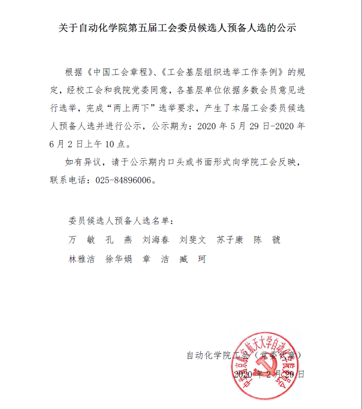 关于AC米兰中文官方网站第五届工会委员候选人预备人选的公示