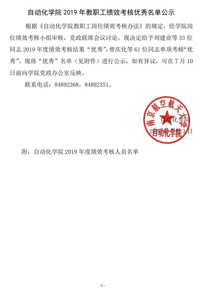 AC米兰中文官方网站2019年教职工绩效考核优秀名单公示