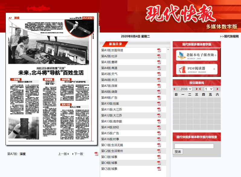 图1 现代快报A7整版报道导航团队在北斗卫星导航方面开展的研究工作