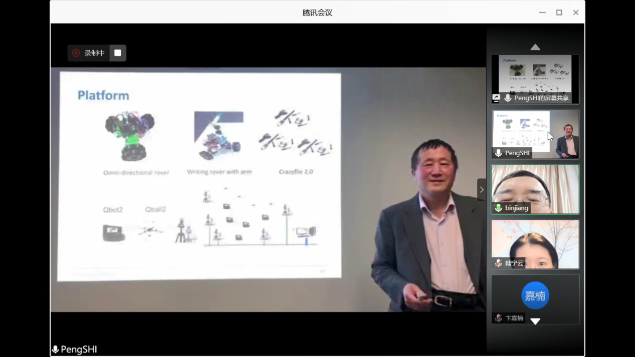 8月12日下午,澳大利亚阿德莱德大学电气与电子工程学院石碰教授应我校国际合作处和AC米兰中文官方网站的邀请,通过腾讯会议作了题为“Formation Control for Multi-agent Systems:Introduction,Analysis and Design”的线上学术报告,报告由米兰官网副校长姜斌教授主持。我院副院长陈谋教授,学院陆宁云、刘春生、冒泽慧、欧阳权、张柯、马亚杰等师生在线参加会议。参会师生对石碰教授的交流分享表示热烈欢迎。