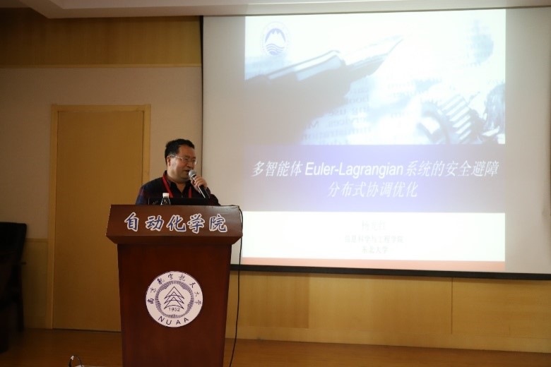 东北大学杨光红教授做了“多智能体Euler-Lagranrian系统安全避障分布式协调优化”的学术报告,针对多智能体Euler-Lagranrian(EL)系统分布式协调优化中的安全避障问题展开研究,该研究本质上是一个多目标问题,因此其主要挑战集中如何实现分布式优化与安全避障机制的一体化设计。提出了一种“势能型”驱动增益,即为对障碍函数(Barrier Function)的路径积分,用于保证当智能体接近障碍物时产生斥力以阻止碰撞。在此基础上,结合分布式优化与自适应跟踪控制方法,提出了安全避障分布式协调优化算法。