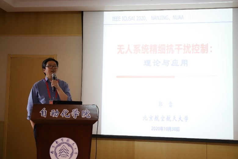 北京航空航空大学郭雷教授做了题为“无人系统精细抗干扰控制:理论与应用”的学术报告,介绍了多源干扰系统精细抗干扰控制理论研究新进展,分析了精细抗干扰控制所具有的复合环节和结构,以及精细抗干扰控制理论研究在无人飞行器自主导航和自主控制系统领域的应用。