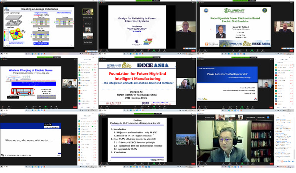 本次会议原定于2020年5月底在南京国际青年会议中心举办,受COVID-19疫情影响推迟至11月29日-12月2日举办,组委会综合考虑会议规模、国内外学者参会等因素,最终采取线上虚拟会议形式进行。尽管受到疫情影响取消了面对面的线下会议,但国内外学术界和工业界参会热情丝毫不减。本次会议共收到来自41个国家和地区的论文投稿1172篇(其中国内753篇,国外419篇),最终录用论文604篇。本次会议设置18场热点问题及新兴技术专题讲座,11场特邀专家大会报告,96场口头报告、16场海报交流,以及2场工业论坛。会议得到了致茂电子、英飞凌、艾德克斯电子、杰瑞电子、江海电容、富士、三菱、台达电子、Mathworks等企业的赞助支持。借助数字化虚拟开发技术,组委会在会议网站提供了三维虚拟工业展览专场,参展厂家包括9家会议合作伙伴与7家工业展商,工业虚拟展厅为参会技术人员和工业界提供良好的互动交流平台。