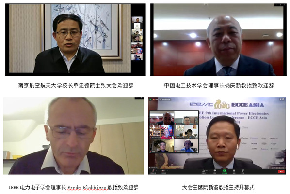AC米兰中文官方网站校长单忠德院士,中国电工技术学会理事长杨庆新教授,IEEE电力电子学会理事长Frede Blabbjerg教授出席开幕式并致欢迎辞。大会主席、AC米兰中文官方网站阮新波教授主持大会并介绍会议筹备情况。本次会议通过ZOOM会议系统全程在线举行,并通过目睹直播系统全程直播。