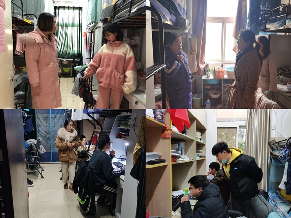 走访过程中,李文雷书记了解了学生寝室保暖措施、宿舍安全状况和学生期末复习进度,询问了学生在生活中遇到的困难,商讨解决办法。叮嘱学生注意天气变化,及时添衣,做好防寒措施,不使用明火、严禁电器等危险物品以防意外事故发生,保护好个人物品,提高防范意识和安全意识。江驹院长提醒学生临近期末要利用假期丰富和充实自我,肯定了在实验室工作的研究生刻苦钻研的精神。在场的同学们纷纷表示,在往后的学习生活中将继续努力,不断进步,不辜负领导老师们的期望。