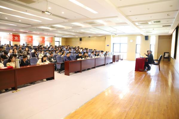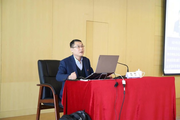 随后,学校党史学习教育宣讲团成员、马克思主义学院徐军教授为在座师生党员讲授了题为《牢固树立正确党史观,旗帜鲜明反对历史虚无主义》的专题党课。从全面体认中国、理性理解中国的视角出发,从前车之鉴、当前形势和我国实际三个维度,剖析了历史虚无主义的脉络、危害和本质,从进一步深入清理历史虚无主义的思想之弊和现实影响的角度,带领大家进行了四个方面的研讨,指导大家在历史唯物主义科学指导中牢固确立正确党史观,真正做到“正本清源、固本培元”。