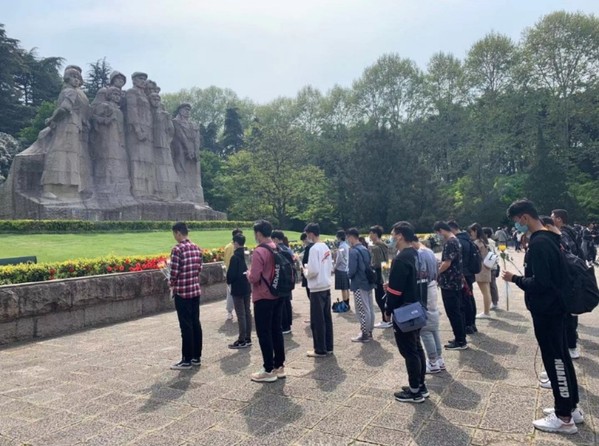 4月10日下午,29名团员前往雨花台烈士陵园开展“学党史、强信念、跟党走”主题团日活动。支部团员来到"就义群雕"下,充分感受信仰的力量,现场接受雨花英烈光辉事迹教育,感知革命先烈们的伟大精神,并在纪念雕像前献上花束。在雨花台革命烈士纪念馆,支部团员认真感悟着馆内陈列的珍贵史料和文物,缅怀革命英烈的同时,也增强了团员赓续共产党人精神血脉的使命感和决心。