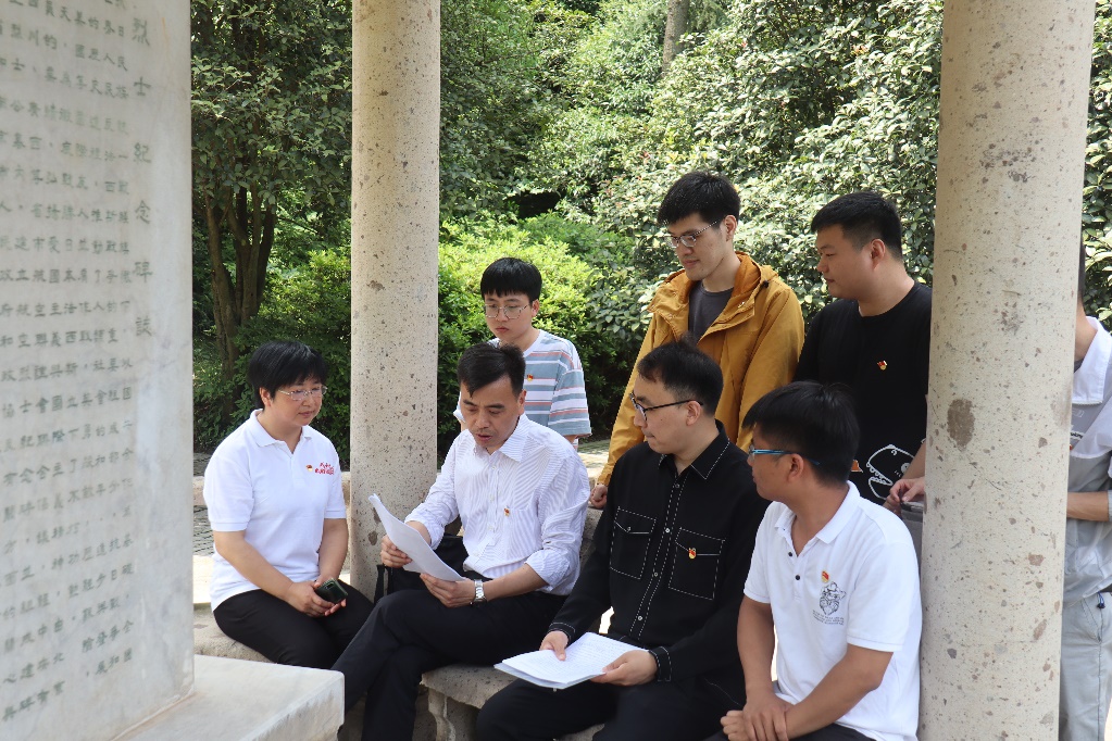 在纪念碑广场前,学院控制学科研究生第一党支部书记邵书义老师领学了《习近平总书记在清华大学考察时的重要讲话精神》。党员们认真听取和学习讲话精神,踊跃发言;通过邵老师的领学,党员们在深刻领会习近平总书记重要讲话的核心要义与精神实质的同时,更加坚定为祖国为人民永久奋斗、赤诚奉献的理想信念。