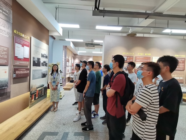 烈日炎炎,在古色古香的荟萃楼校史馆门前,党支部全体成员合影留念。随后在讲解员的带领下,大家一起参观了校史馆“发展历程”、“人才培养”、“科学研究”、“党建引领”4个展厅,重温和体会了南航建校之初的艰苦历程以及建校之后的快速发展。