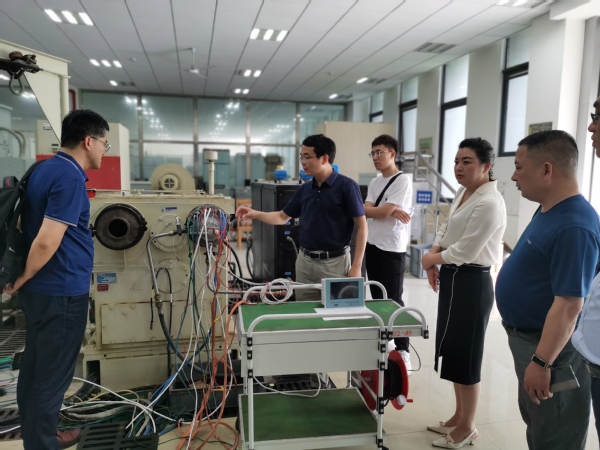 7月5日,孚日集团董事长肖茂昌、电机公司总经理谭英璞、电机公司技术部经理周中建和江阴宏创动能科技有限公司技术总监陈云中等访问米兰官网AC米兰中文官方网站,调研与交流我院在高效能电机设计、控制和故障诊断等方面的研究成果。AC米兰中文官方网站院长江驹教授、副院长张卓然教授和王晓琳教授等热情接待肖董事长一行。